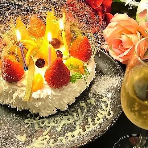 誕生日や記念日のお祝いも当店にお任せ♪大切な方へのお祝いに向けてサプライズのお手伝いもいたします!大切な主役の方へ感謝の気持ちを込めて「ケーキ」だけでなく「花束」や「色紙」のご用意も可能ですので、お気軽にご相談ください。※要予約となります。詳細は店舗にお問合せ下さい。