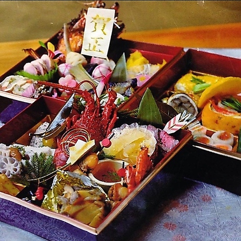 良い年になります様、心を込めて手造りする荒磯ならではのおせち料理。一の重海老の鬼がら雲丹焼や栗きんとんetc、二の重には伊達巻、鱈子の昆布巻etc、三の重には伊勢海老や鮑の酒蒸し、数の子など織り込んでおります。また昨年ご注文頂いて当店の重箱をお持ちのお客様は2000円割引き致しております。※ご注文はお電話にてお待ちしております。