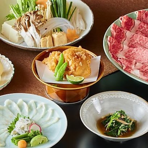 1月、2月のお勧め!冬の贅沢!とらふぐ料理と専門店のしゃぶしゃぶセットコース 8,500円~牛肉5種類!