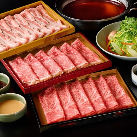 しゃぶしゃぶ食べ放題+贅沢飲み放題!込々プラン 9,000円 10,000円 11,000円、14,000円 牛肉4種類!