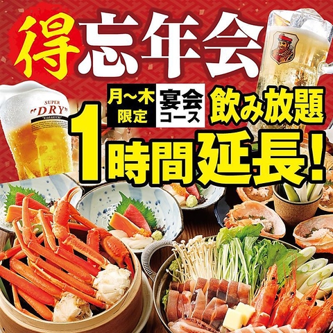 12/25までの日曜日~木曜日に宴会をご予約いただくと、飲み放題が1時間延長になります!