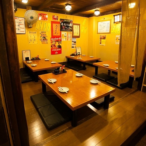 店内奥のテーブル席は、ご宴会や歓送迎会、忘年会などに最適な空間です!少人数から18名様までご利用可能です。ご予約の際お問い合わせください。