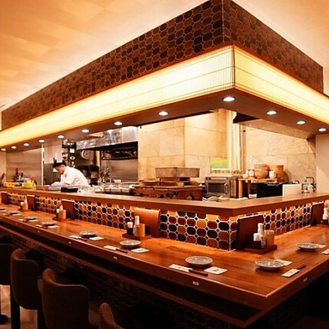 料理人が目の前で腕を振るう臨場感を楽しめるカウンター席。出来立てのお料理を味わえるのはもちろん、お一人様でも気軽にご利用いただけるお席です。