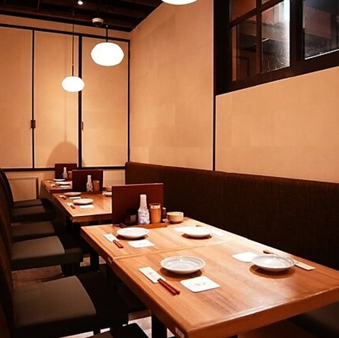 4名様までご利用可能なテーブル席は、仕事帰りの一杯や気の置けない仲間との食事にぴったり。広々とした空間で、お食事と会話を心ゆくまでお楽しみください。