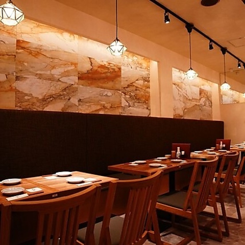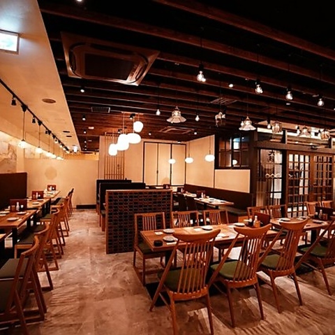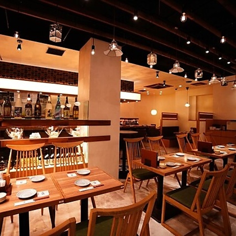 温かみのある照明と木の温もりに包まれた、落ち着いた雰囲気の店内。お仕事帰りの一杯から友人とのランチ、大人数のご宴会まで幅広いシーンでご利用いただけます。ゆったりと寛げる上質な空間で、心ゆくまでお料理をお楽しみください。