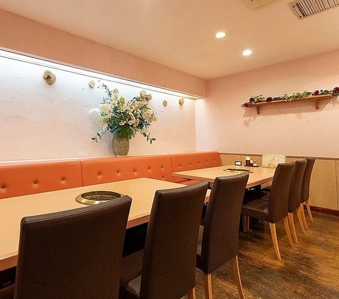 | テーブル | 4名様×7 | コースのほかに単品メニューも充実しております。自分の好きな部位のみを注文し、お肉を心ゆくまでご堪能いただけます。お子様用椅子用意あり。ベビーカーのままご来店もOK。 |