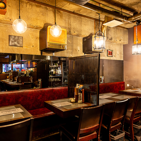 NEO大衆酒場をコンセプトにカジュアルで大人な空間となっております。モダンで隠れ家のような内装は落ち着いた雰囲気でお食事を楽しむのにピッタリです。カウンターもございますので、お一人様でもお気軽にご来店いただけます。