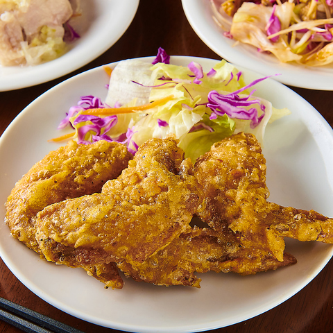普通盛りで米2~3合分、外はサクサクで中はジューシーな大きな唐揚げが6個!当店の名物料理の1つです。WEBメディアを中心に、口コミサイトでも評判を頂いております。当店のメニューは全般的にボリュームがありますので、シェアをして召し上がって頂くか、スモールサイズ(580円)もご用意致しております。