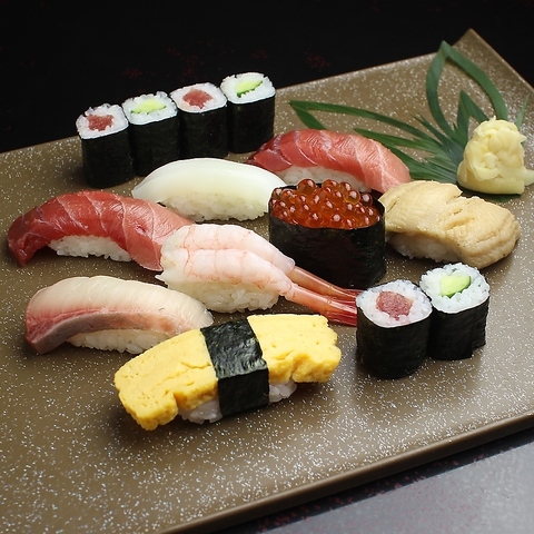 《寿司9貫と巻物1本》中トロ2貫・ウニ・ふわふわ穴子入り