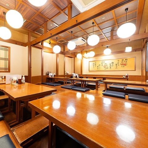 広々とした大人数様用の席もプライベートにぴったりな個室やテーブルも落ち着く和の雰囲気