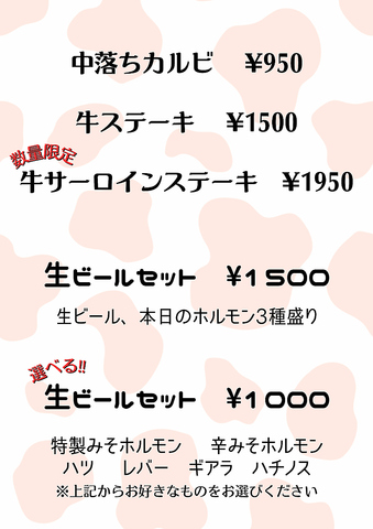 ちょっと贅沢にステーキ♪お得に生ビールとホルモンでちょい飲み♪大歓迎です☆