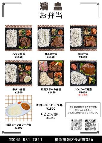 焼肉 濱皇 テイクアウト 2025/12/13 更新