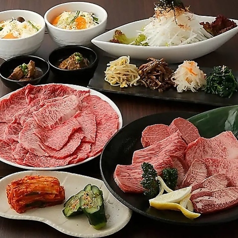 きれいな空気と水、上質な飼料で育てられた和牛の上物を使用した、塩焼の盛り合わせ皿や上タン塩焼、和牛ロース、カルビなどが楽しめるボリューム満点のコースをご用意しています。歓送迎会や打ち上げ、接待、女子会、デート、ご友人やご家族との日常使いにもぴったりです。特別なひとときをお過ごしください!