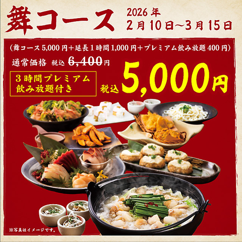 人気NO1舞コース(全9品)+プレミアム飲み放題+1時間飲み放題延長 合計6,400円が…超お得!5,000円(税込)