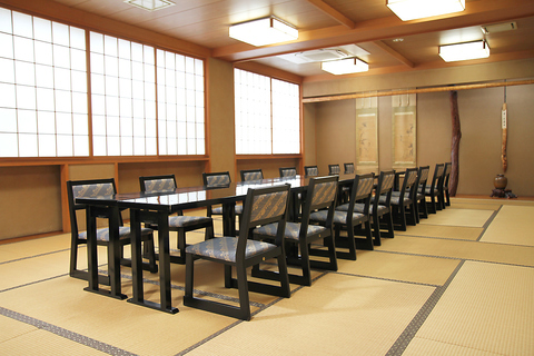 畳の温もりを感じながら、椅子で楽に過ごせる和室のテーブル席です。長時間の会食やご家族の集まり、法事やお祝いにも安心してご利用いただけます。靴を脱いでゆったりくつろげる、落ち着いた和空間でお食事をどうぞ。