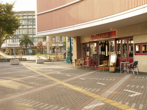 赤いドアが印象的、イタリアンらしい陽気であかるい入口。お買い物ついでについ入りたくなる店構え。