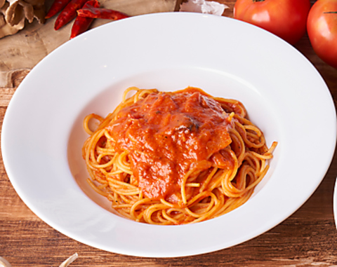 イタリア産トマトで仕込んだまろやかな甘さとコクのある深い味わいのトマトソースと、しっかりとソテーしたニンニクの香ばしい風味がクセになる1978年創業時より常に人気No.1の看板メニューです。※テイクアウトOK