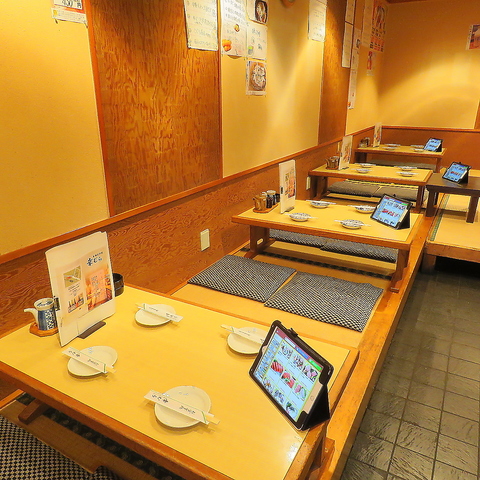 ■同僚・友人知人との飲み会にプライベートな宴会ご利用!■ご用意しております掘りごたつ4名様テーブルは、4卓ございます。気のおけない仲間とわいわいがやがやと準備しておりますタッチパネルで新鮮魚介の絶品料理やこだわりのお酒をお探し下さい!スタッフ一同お待ち致しています。