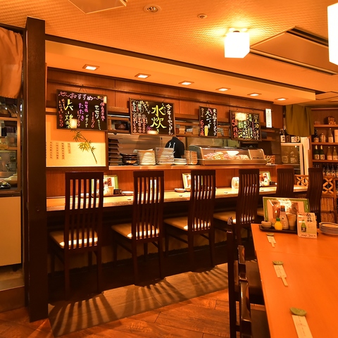 【カウンター席】さく飲みや、デートにおすすめのカウンター席♪女性のお一人様でも気軽に来店いただけるそんなアットホームな空間です!定食メニューも充実しておりますので、仕事帰りに夕食を召し上がっていかれる方も多数いらっしゃいます!気軽にご活用ください☆