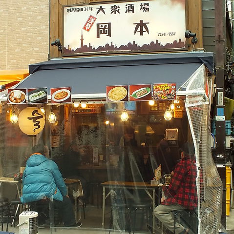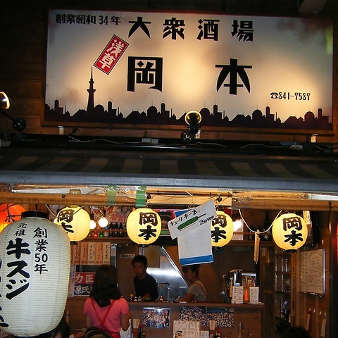 TX浅草駅から徒歩1分、飲食店がひしめくホッピー通りの中心に[大衆酒場 岡本]はございます。観光途中の休憩にもお立ち寄りいただきやすくアクセスも良好です。老若男女から愛される当店で、お好みのお酒と50年以上拘りぬかれた牛スジもつ煮込みなど手間暇かけられたお食事をご堪能ください。