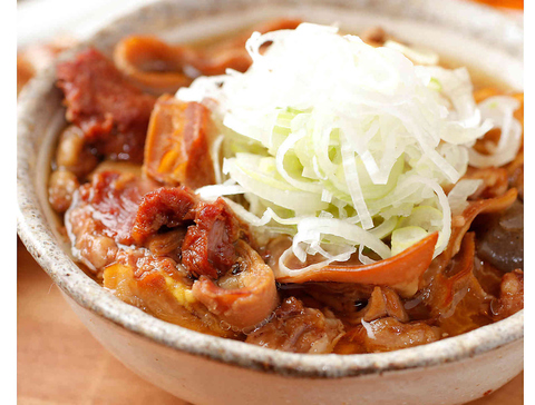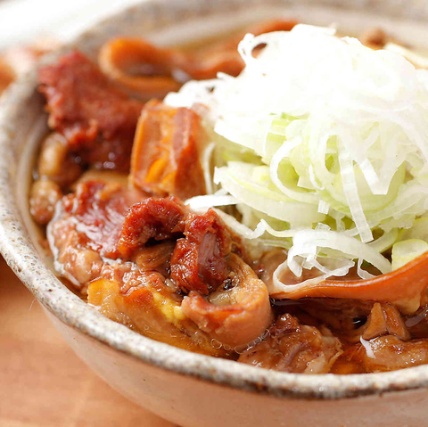 創業昭和34年、代々受け継がれてきた「元祖牛スジもつ煮込み」が当店の看板メニューです。新鮮な牛スジ肉を6時間以上かけて丁寧に煮込み、トロトロのやさしい食感に仕上げました。7種類の具材を使用した秘伝の味付けは、60年以上変わることなく守り続けてきた伝統の味です。旨みが凝縮された自信の一皿をぜひ最初にお召し上がりください♪