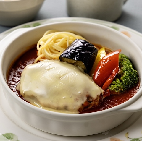 ビーフ100%の手ごねハンバーグトマトソースとチーズの相性抜群!