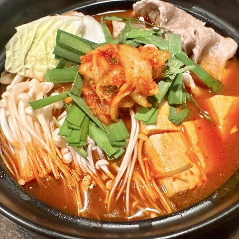鉄板焼き屋ですが、鍋も本気!今年はもつ鍋とキムチ鍋の2種類です!〆には、ラーメン、うどん、おじやの3種類をご用意!ぜひご賞味ください!