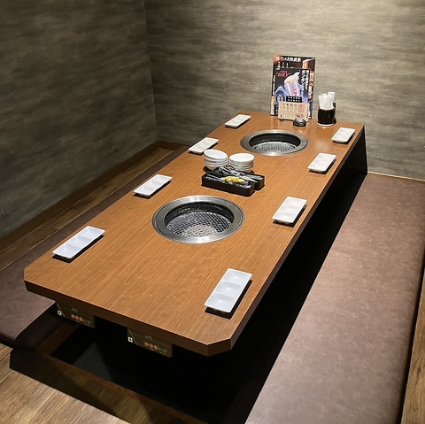 隣りを気にせずに食事を愉しめる半個室。ゆったり足を下せて居心地も抜群★ご家族やサークル帰りなど、みんなで本格炭火を囲んで焼肉をお楽しみください ※画像は系列店です