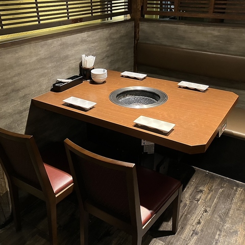 隣りを気にせずに食事を愉しめる半個室。ゆったり足を下せて居心地も抜群★ご家族やサークル帰りなど、みんなで本格炭火を囲んで焼肉をお楽しみください ※画像は系列店です