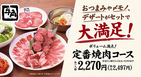 人気の牛タン塩や牛角ハラミ、おつまみ、〆ものまで選べて、この価格。御夫婦やカップル、ファミリーのお客様まで楽しめます。