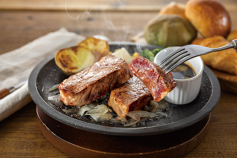 ステーキ 195-260gサイズにはお肉を焼くための鉄板がつきます。