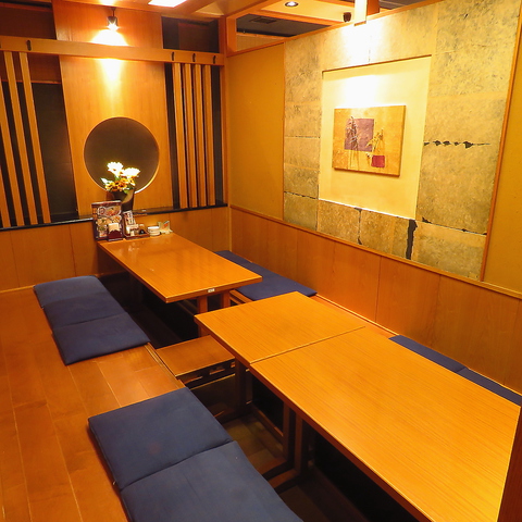 広々とした大人数様用の席もプライベートにぴったりな個室やテーブルも、落ち着く和の雰囲気