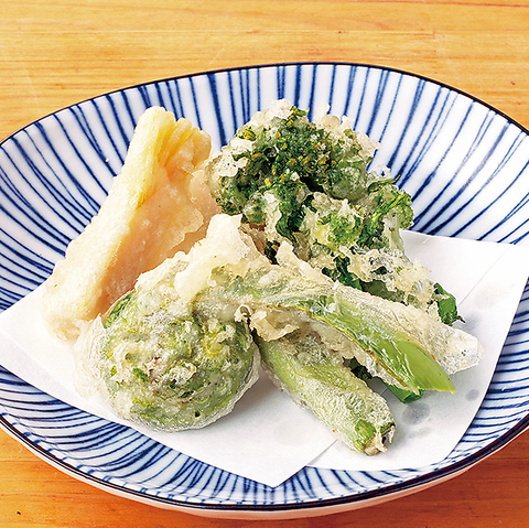 「初かつお叩きおろしぽん酢定食(1100円)」「ポークチャップの新玉ねぎソースと目玉焼き定食(1200円)」「定食屋のチンジャオロース定食(1100円)」【一品料理】「山菜天布羅盛り合わせ(580円)」「ほたるいかのぬた(390円)」など※仕入れ状況により内容が異なる場合がございます※価格は税込、写真はイメージです。