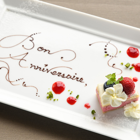 サプライズで温かいメッセージを一言添えたデザートを。記念日・誕生日・女子会に大人気のサービスです