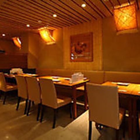 店内は木の温もりが溢れるモダンな雰囲気。普段のお食事から、接待や会食などプライベート使いにもおすすめ