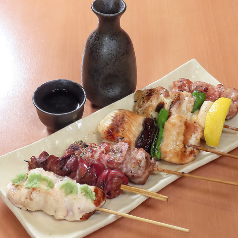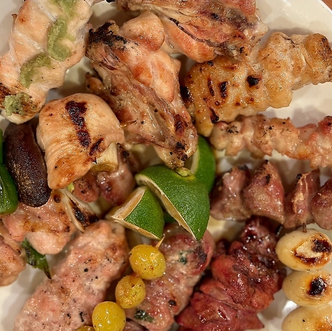 【表・裏コース2種類ございます。】表:さび焼き・血肝・しそ巻・つくね・ねぎ巻・もも正肉裏:砂肝・なんこつ・皮焼・白玉・銀杏・手羽先