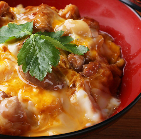 比内地鶏のもも肉を炭火で炙り使用。半熟に仕上げた親子丼は絶品です。ランチタイムでも一番人気の商品です!