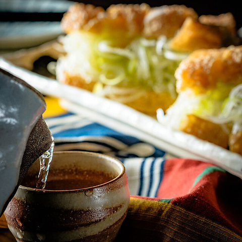 【当店名物!】ご来店された方が必ず召し上がる「名物ジャンボ油揚げ」は、クセのない淡泊な風味で、そのまま食べても美味しい一品です♪高温で2度揚げすることで、絶妙でパリッとした歯触りと弾力が生まれ、芯までふっくらな食感をお楽しみいただけます。ご希望でハーフ&ハーフも承ります◎