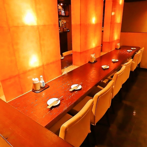 お仕事帰りにお立ち寄りやすいカウンター席をご用意しておりますので、お一人様でも気兼ねなくご利用いただけます。コースだけでなく、単品料理や単品飲み放題も豊富にご用意しておりますので、ちょい飲みやお食事にも最適です◎