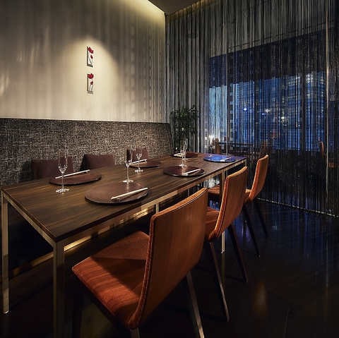 【6~12名様までご利用可能の個室】汐留の美夜景を一望出来るモダンな個室もございます。大人数でのご利用が可能な個室です。とても人気となっておりますので、お早目のご予約をオススメしております。