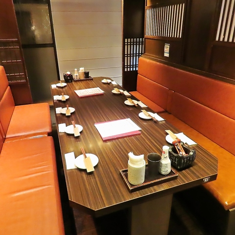 大人の雰囲気がコンセプトの半個室は、お勤め先での宴会や気の合う仲間との飲み会にもおすすめです。当日利用できるコースもご用意しておりますので是非ご活用ください。ご予約やお問い合わせはお気軽に店舗までご連絡ください。