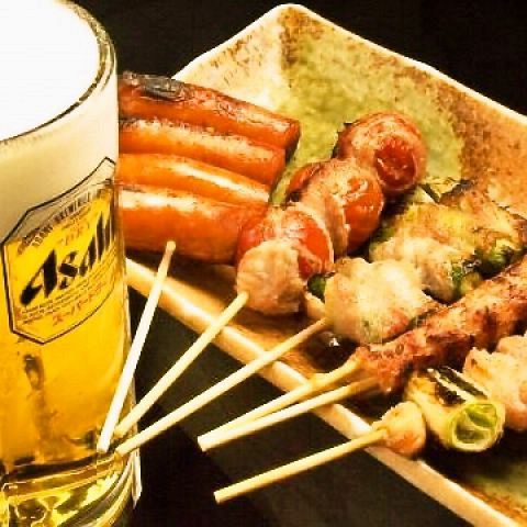 その日の朝仕入れた厳選素材の鶏串を備長炭で焼上げた本格炭火串焼きをリーズナブルに!毎週焼鳥半額キャンペーン中