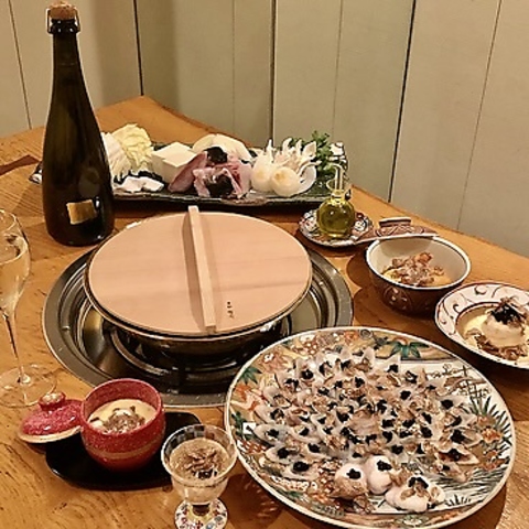 天然とらふぐを用いた伝統のてっさやてっちりをはじめ、季節ごとの希少食材を取り入れた特別なお料理をご提供。旬の味覚が織りなす、この時期ならではの贅沢をぜひお楽しみください。