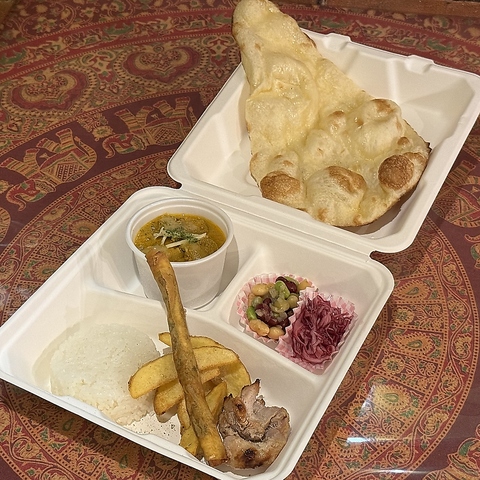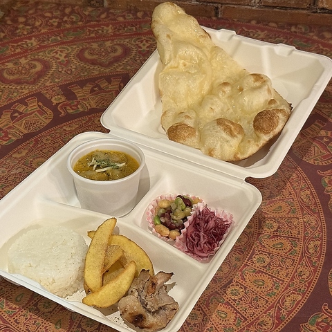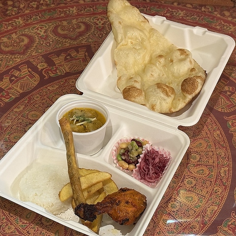 5種類から選べるカレーや本場の味を詰め込んだガンジーオリジナルのお持ち帰り用のお弁当。ご家庭で気軽にガンジーの美味しいお料理を楽しくお召し上がり頂けます様、インド人シェフが心を込めてお作り致します。お電話でのご予約が便利ですが、営業時間中(L・Oまで)で承ります。1296円(税込)よりピリ辛キーマロール揚げ付き(画像)1404円(税込)