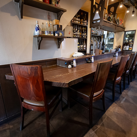 1階のカウンター席は、お一人様でもご友人や、デートでも使いやすい雰囲気づくりがされています!酒瓶が並べられていて、バーのような空間にもなっています★高田馬場/宴会/飲み放題/歓送迎会/デート/ランチ