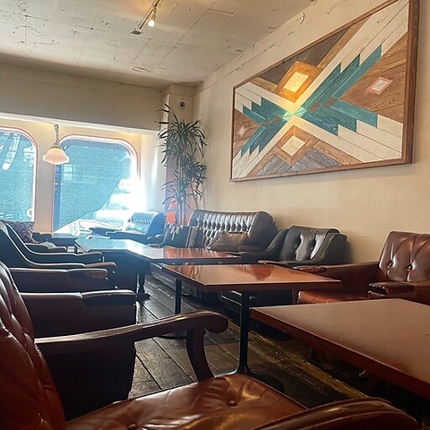 【店舗貸切は20名~OK!】大きな窓の開放感溢れる店内。アンティークなソファーが落ち着いた雰囲気を醸し出します。店内は20名~30名のお客様に貸切パーティもご提供しております。詳細に関してはお問合せください!