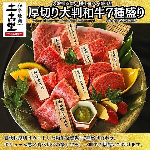 豪快に厚切りカットした和牛を贅沢に7種盛り合わせ。ボリューム感と食べ比べの楽しさを一皿でご堪能頂けます。