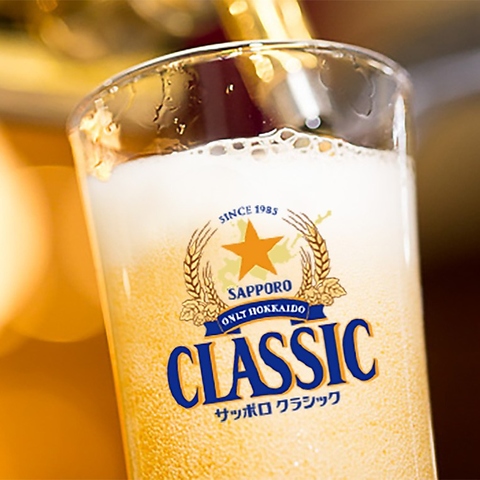 北海道を訪れたらぜひ味わいたい、北海道限定の特別な生ビールをご用意しております。きめ細かい泡と爽やかな喉越しは、炭火で焼き上げた熱々の炉端焼きや揚げ物と相性抜群で、乾杯の最初の一杯として最適です。美味しい料理と冷えたビールで、一日の疲れを癒やす贅沢なディナータイムをご堪能いただけます。