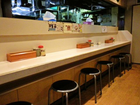 一人でも気軽に食事ができるカウンター席。席数も多めになっている。荷物を置くスペースもある。