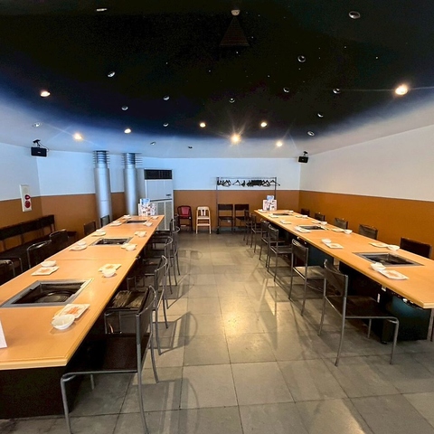 最大150名の大型宴会に対応可能です。広大な店内は50名、44名、36名、24名の各エリアに分かれ、人数に合わせた貸切や宴会にも最適。鮮度抜群なビールと、柔らかな生ラムジンギスカンの食べ飲み放題を、開放感あふれる庭園の景色と共に楽しめます。